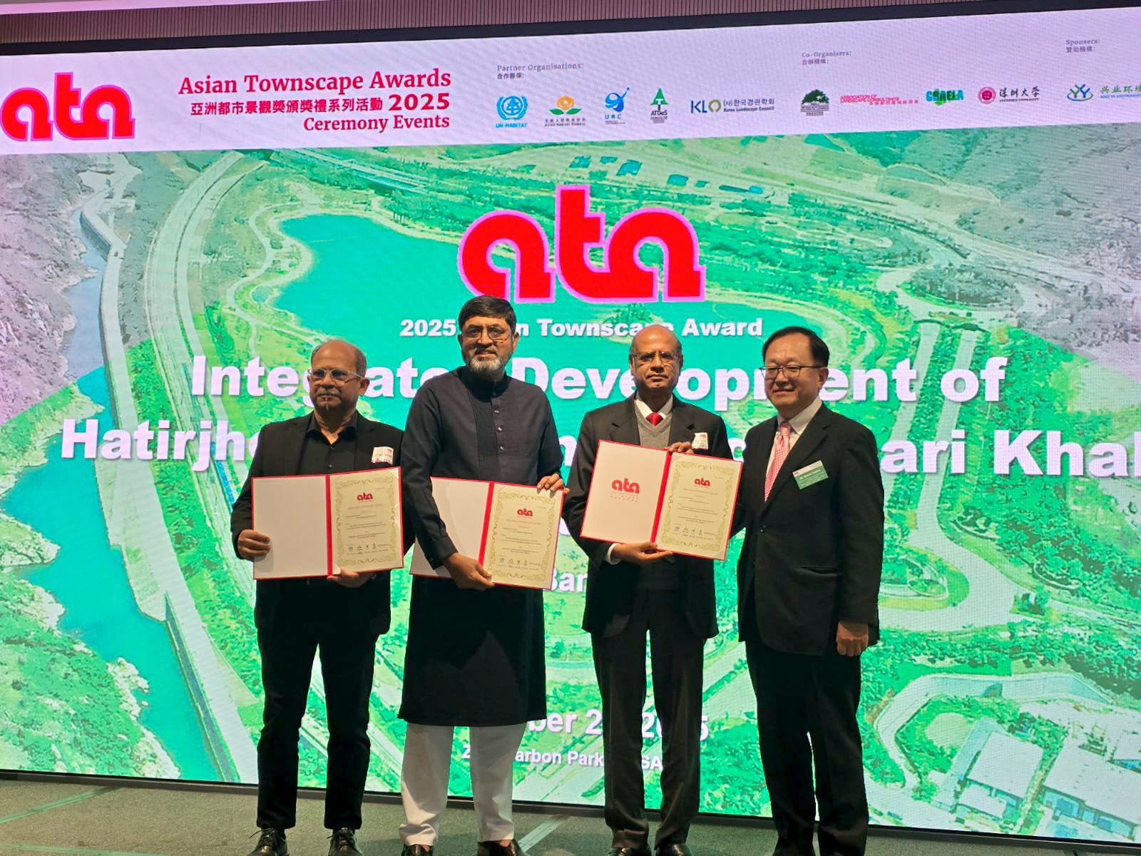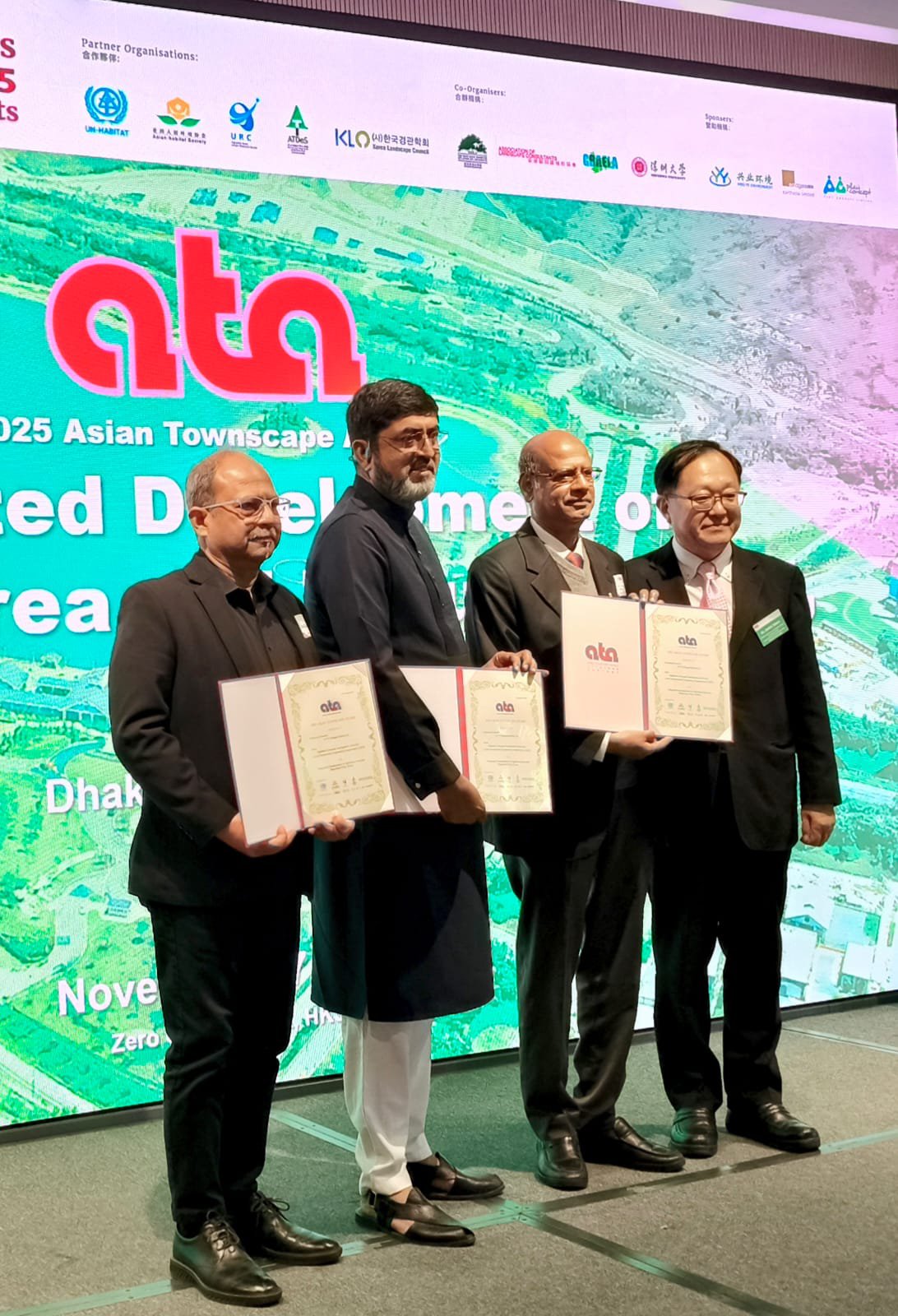 The Asian Townscape Awards are collaboratively presented by UN-HABITAT, Asian Habitat Society (AHS), Fukuoka Asian Urban Research Center (URC), and Asia Townscape Design Society (ATDeS). This year, 11 projects from 7 countries were selected from 72 submissions across Asia, and both Bangladesh and India secured notable achievements among the five award categories. Dhaka received the Asian Townscape Award 2025 for the lake and water body development category for its Hatirjheel integrated development project. Previously,y Bangladesh received 3 Jurors Award, but it's the first time Dhaka received the project as the city for lakes and lakeside area development.