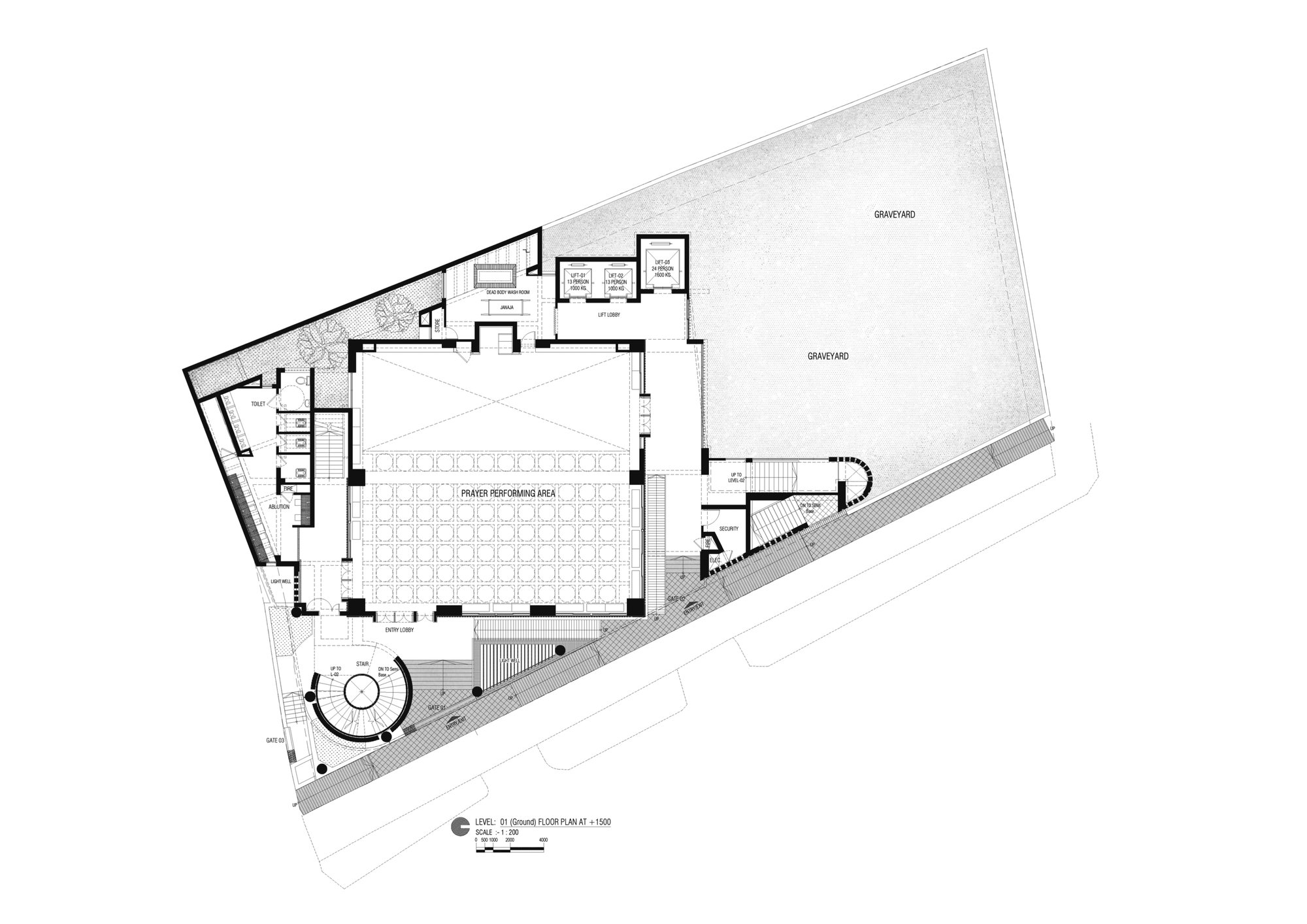 Sobhanbag Mosque stands as a quiet witness to Dhaka’s transformation over nearly nine decades. Founded in 1937 as a modest neighborhood prayer house, it evolved alongside the city as Mirpur Road grew from a tree-lined lane into a major urban artery. As density intensified and the congregation expanded, the mosque was reimagined to respond to contemporary pressures while preserving its spiritual and cultural legacy. The new design adopts a restrained cubic form, drawing inspiration from timeless Islamic abstraction and the geometric clarity of Louis Kahn’s architecture. Rising vertically within a compact site, it accommodates prayer, learning, and residence without encroaching on the surrounding public realm. Brick and marble articulate a dialogue between memory and light, grounding the mosque in history while opening it to the city. Lifted on pilotis, the building creates a porous threshold between street and sanctuary. Sobhanbag Mosque today is not only a place of worship, but an urban anchor where faith, architecture, and the evolving life of Dhaka meet with calm dignity.